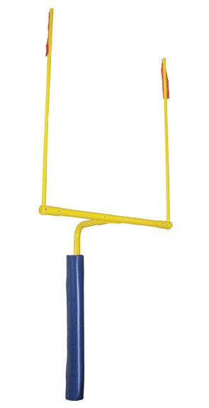 Why settle for small, flimsy, plastic goalposts offered by other manufacturers? The Gridiron football goalpost is built solid from the ground up. The vertical post and crossbar are constructed from 3″ aluminum. 1 1/2″ diameter uprights are also made from aluminum. The crossbar stands 6’6″ above the playing surface and measures 7′ wide. The uprights are 7’4″ tall above the crossbar. All parts are coated with official safety yellow powder coat paint. Red wind streamers are included.
