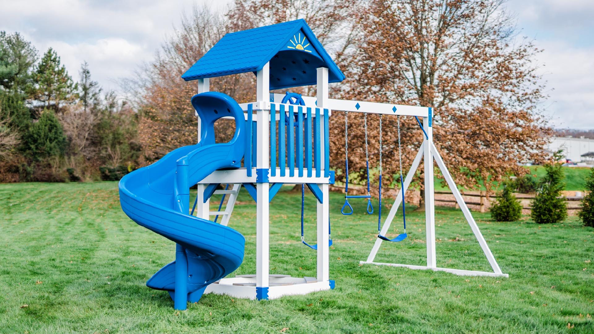 Winnie’s Tower is a fantastic swing set in the Teddy Bear Series. If you like the super spiral slide and have a small play area, we recommend checking out this swing set!