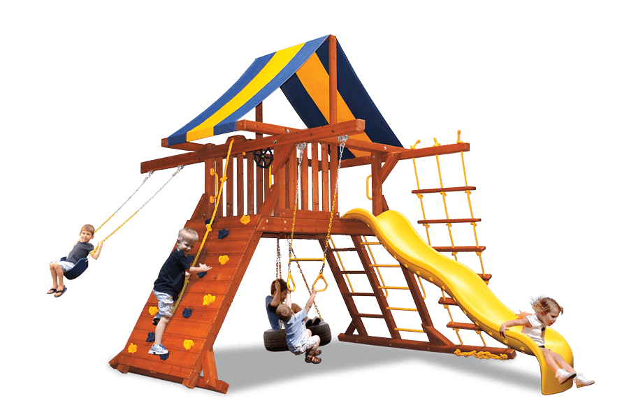 From the rock wall to the step/rung entry ladder to the 360° tire swing, and double swing arm your children will be entertained for hours. Made from super sturdy cedar construction the Original Playcenter is the perfect choice for the value minded family who demands the best! Get Out There and Play®
