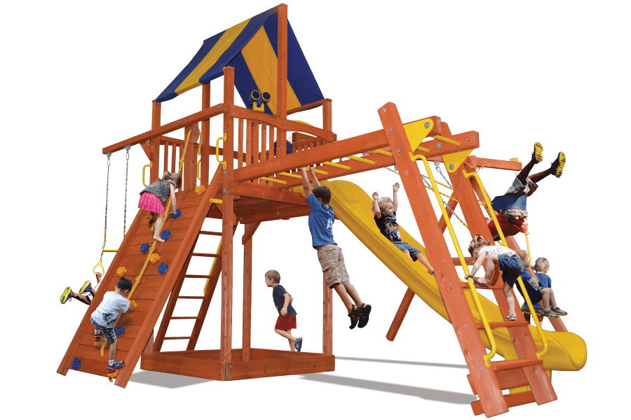 The Playground One Supreme Fort Combo 3 is a much larger version of the Original Fort with even larger Monkey Bars! The decks on the Supreme Forts are taller and bigger – coming in at 6.5′ high with dimensions of 5′ x 5′. This makes for a higher swingbeam AND bigger slide. Step up the fun with the Supreme Fort Combo 3! Call us ANYTIME – we love answering your questions! 1-201-670-4000