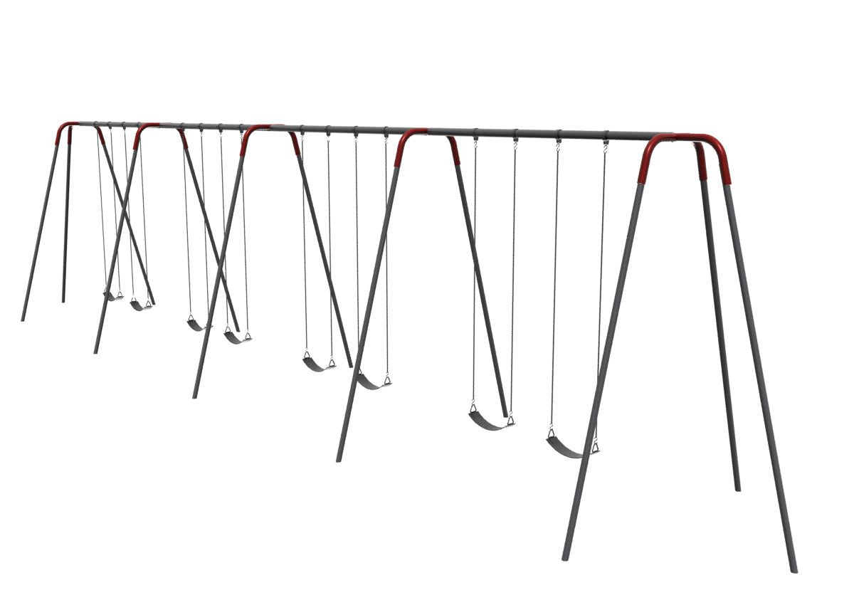 Swing legs shall be 13 gauge 2 3/8” O.D. Top rail for standard Modern swings shall be 13 gauge 2 3/8” O.D. Top rail for Heavy Duty Modern swings shall be 8 gauge 3 1⁄2” O.D. Both are produced in a patented in line triple zinc flo-coating process that provides a smooth shiny uniform appearance with up to 25% greater corrosion resistance than galvanized schedule 40 pipe, along with greater strength and lighter weight for comparable sizes.