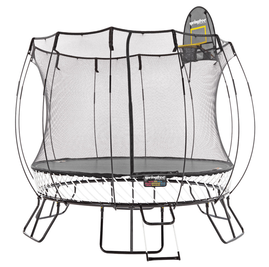 Our Springfree® 10ft Round Trampoline and Safety Enclosure is designed for jumpers of all ages. Our 10ft mat jumping surface is equivalent to a traditional 12ft trampoline but takes up the space of a traditional 10ft trampoline – so you maximize your jumping surface and save valuable backyard space.