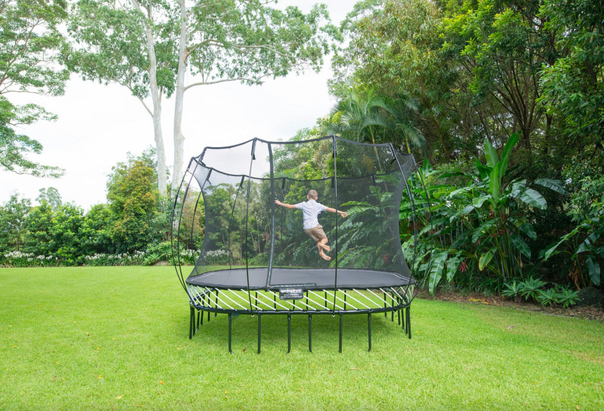 For a large trampoline you and your kids will both love, try Springfree®’s 11-foot square trampoline — optimized for safe and fun bouncing and designed for efficient use of space, this trampoline will let your family jump the day away.