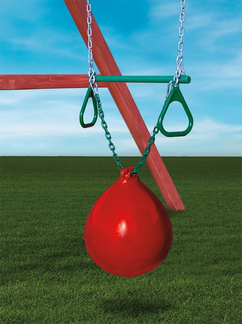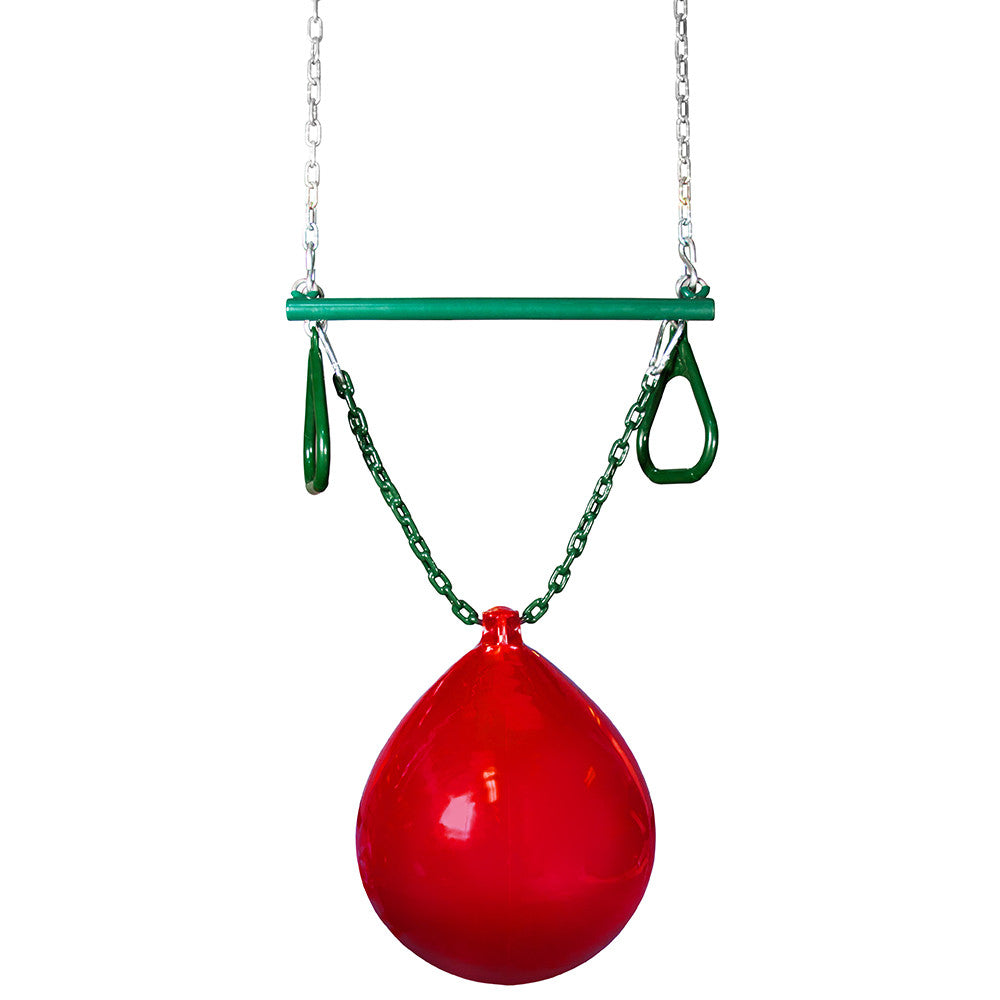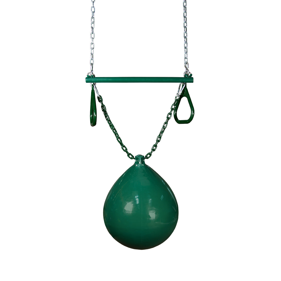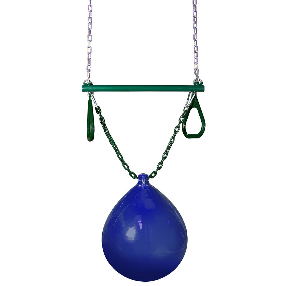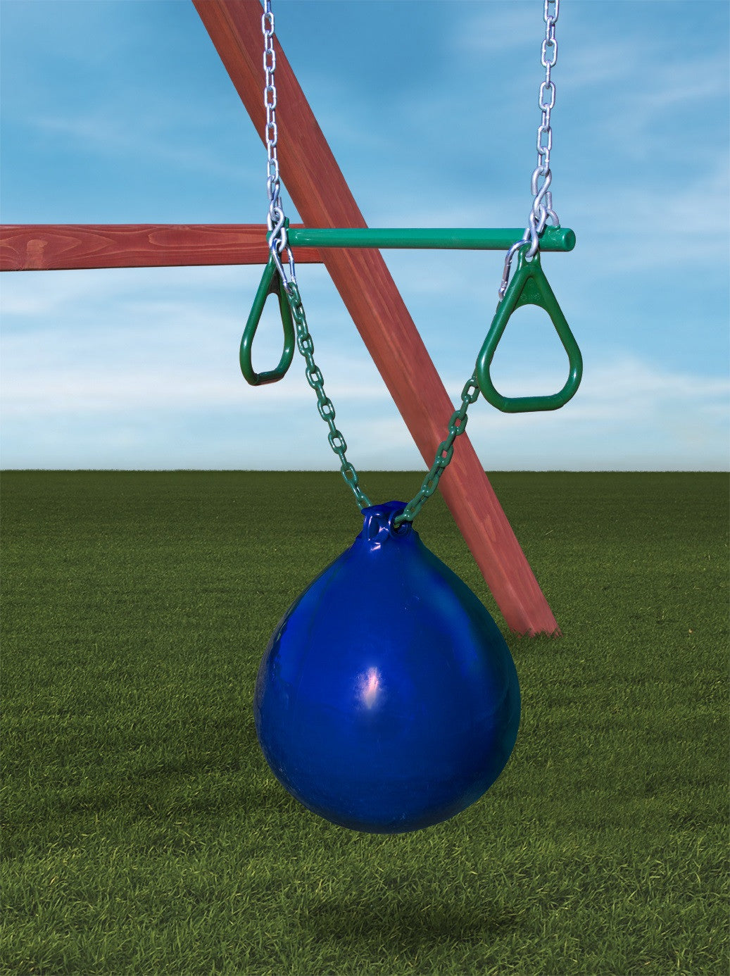The buoy ball is a playground favorite, since it’s quite unique. Kids love climbing on it, swinging from it, and sitting and wrapping their legs around it. It’s so versatile, since you can use it in so many ways! When used with the trapeze bar, you have the added fun of the straight bar and the handle grips! You can easily take off the buoy ball and use the trapeze bar without it. The buoy ball is a soft and light-weight rubber ball that inflates into the size you need! It includes all spring clips and plastisol coated chain with the product.